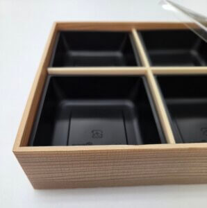 主に『松花堂弁当』と呼ばれるお弁当に使われている容器となります。