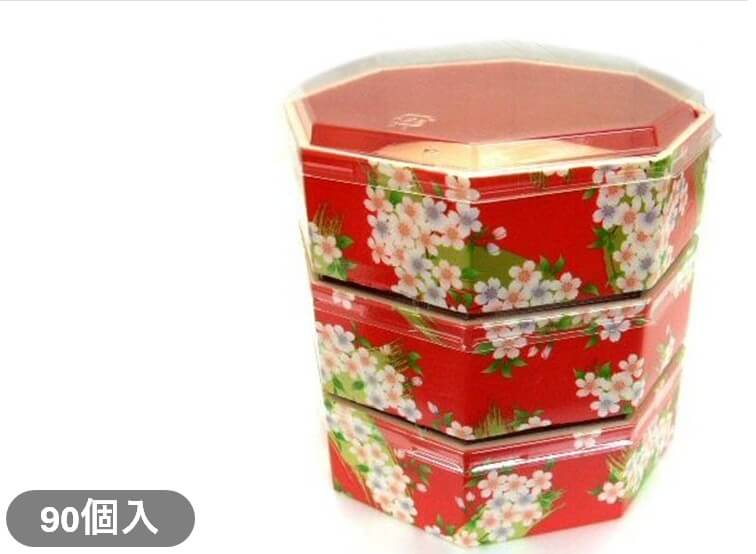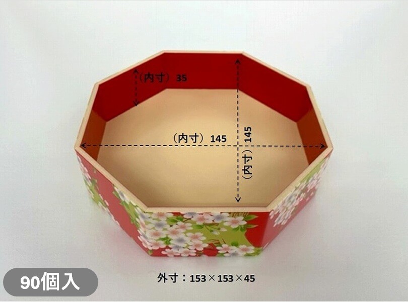 【折箱】八角5.1寸 宝扇華-赤 蓋付(90個入)