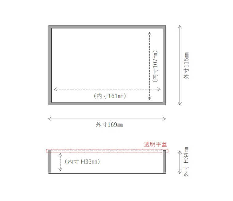 本体 外寸 169×115×34mm、内寸161×107×33mm